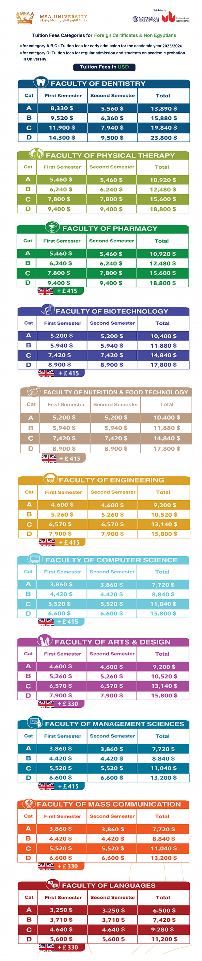 MSA University offers 50% discount to the following nationalities as a kind of financial Aid:
