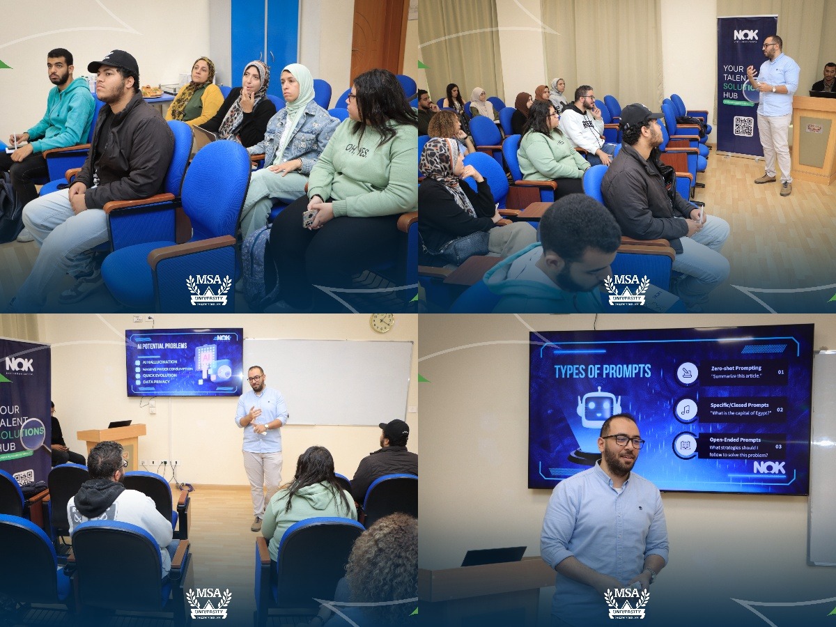 As part of our effort to help students and graduates build a smarter future with AI, the MSA Alumni Unit at October University for Modern Sciences and Arts (MSA), in collaboration with the Faculty of Physical Therapy and NOK Human Capital, hosted an interactive AI session on campus.