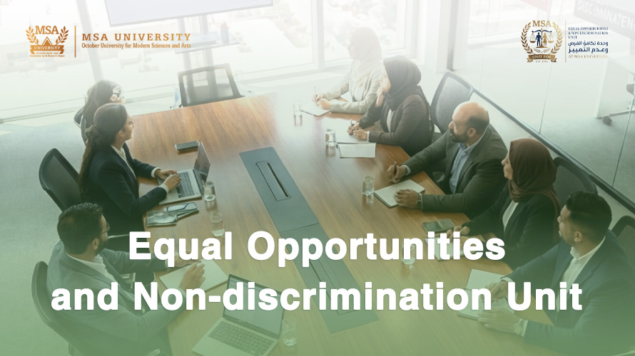 The Equality and Non-Discrimination Unit at October University for Modern Sciences and Arts (MSA) is committed to promoting and ensuring the rights of Egyptian women, grounded in social justice, equal opportunity, equality, non-discrimination, and empowerment.