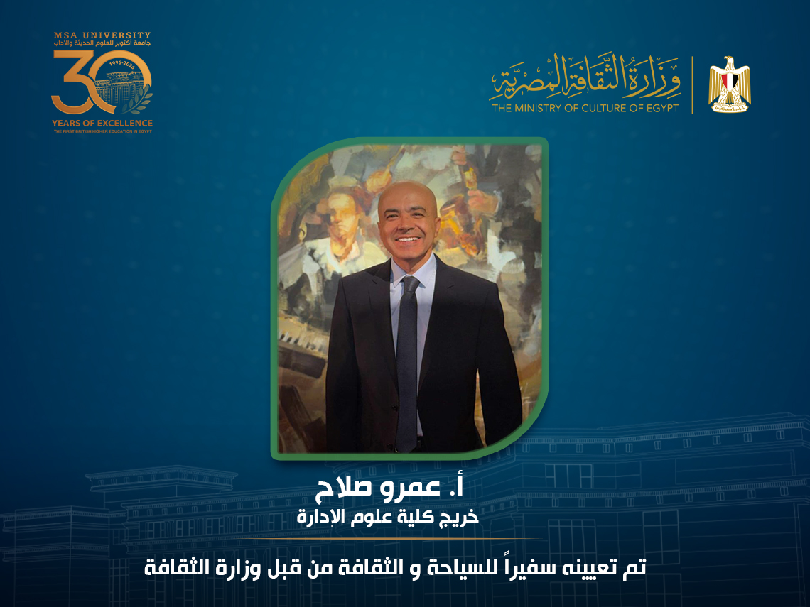 October University for Modern Sciences and Arts (MSA) proudly congratulates Amr Salah, a photographer, traveller and distinguished graduate of the Faculty of Management Sciences (Marketing), on his appointment as a Cultural and Tourism Ambassador as part of a national initiative led by the Egyptian Ministry of Culture.
