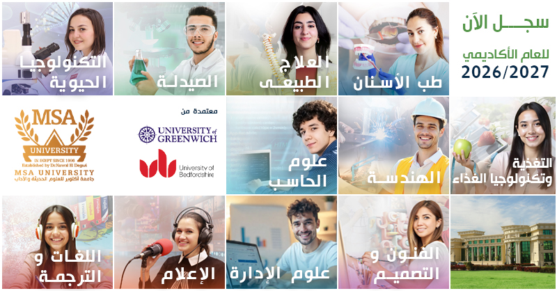 To Egyptian high school students and holders of equivalent Arab and international certificates who wish to enroll at MSA University (the first British higher education institution in Egypt, accredited by the British universities of Greenwich and Bedfordshire – established in 1996) for the academic year 2026/2027.