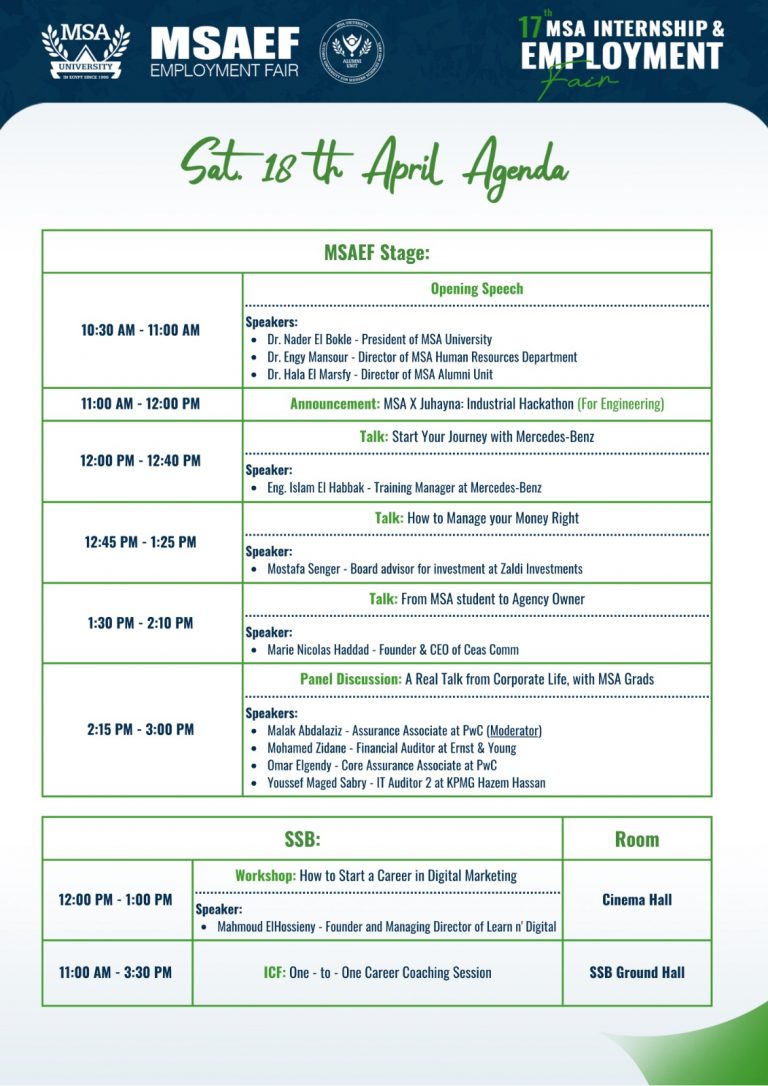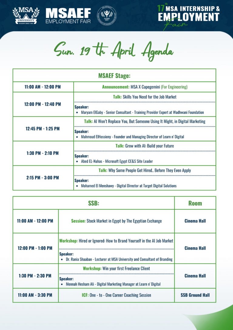 MSA University is pleased to announce its 2026 Annual Internship and Employment Fair, a two-day career and recruitment event aimed at connecting leading companies with MSA students and graduates from all fields.