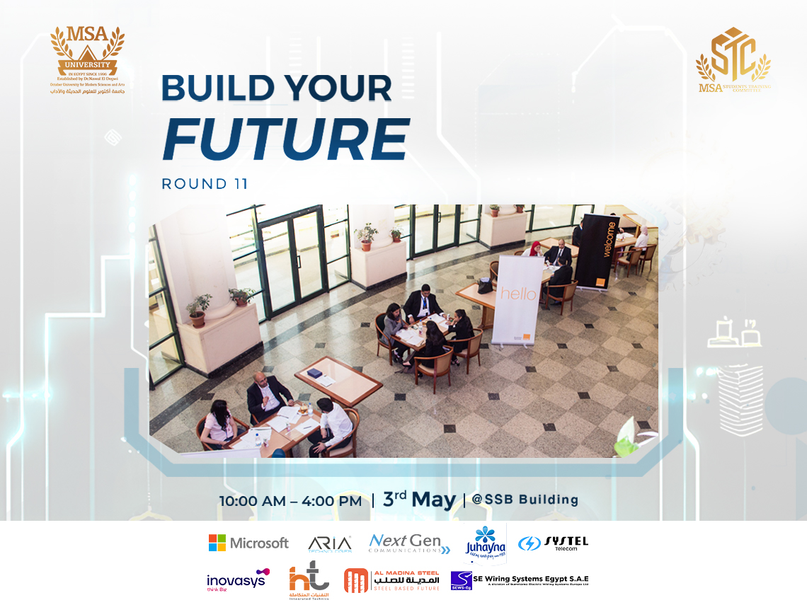 MSA University Students Training Committee (MSA-STC) at October University for Modern Sciences and Arts (MSA) is excited to invite you to be part of our biggest career event: Build Your Future – Round 11.