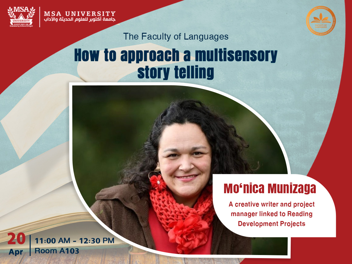 The Faculty of Languages at October University for Modern Sciences and Arts (MSA) is conducting a session entitled “How to approach a Multisensory story telling” which will be led by Moʻnica Munizaga, a creative writer and project manager linked to Reading Development Projects.