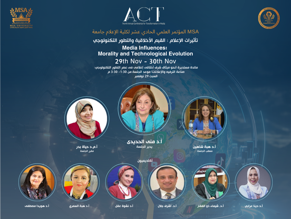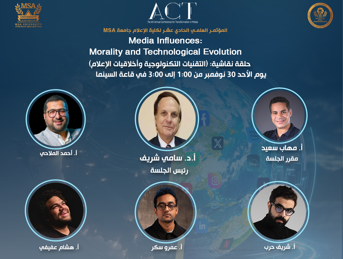 The Faculty of Mass Communication at October University for Modern Sciences and Arts (MSA) is proud to host a distinguished panel discussion as part of the 11th Scientific Conference: “Media Impacts: Ethical Values and Technological Advancements.” This session will explore the effects of technological developments on media and discuss how to establish responsible ethical standards in digital and media content production.