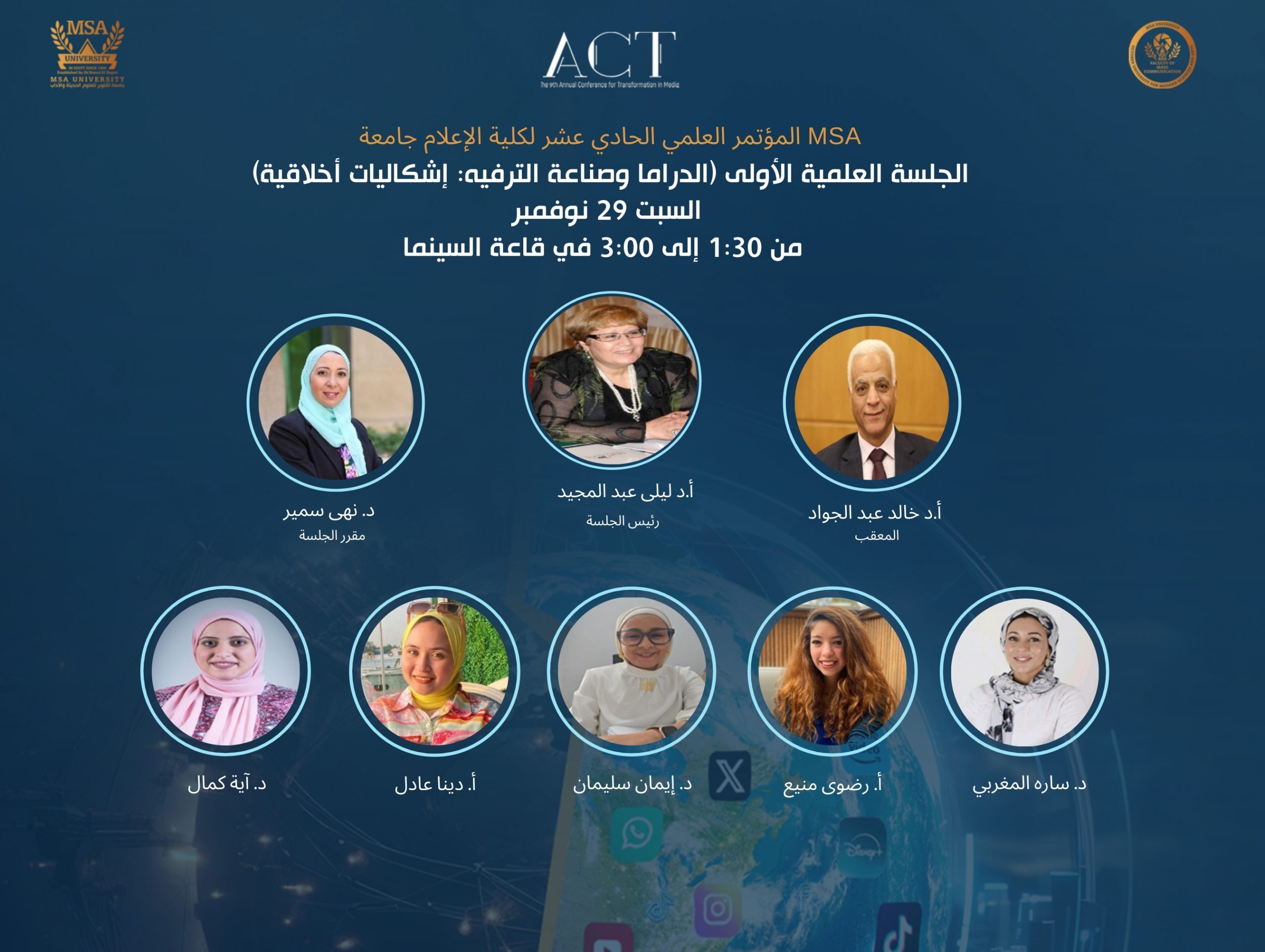 As part of the 11th Scientific Conference of the Faculty of Mass Communication at October University for Modern Sciences and Arts (MSA), under the theme “Media Impacts: Ethical Values and Technological Advancement,” the first session of the conference dives into the ethical responsibilities of drama and entertainment.