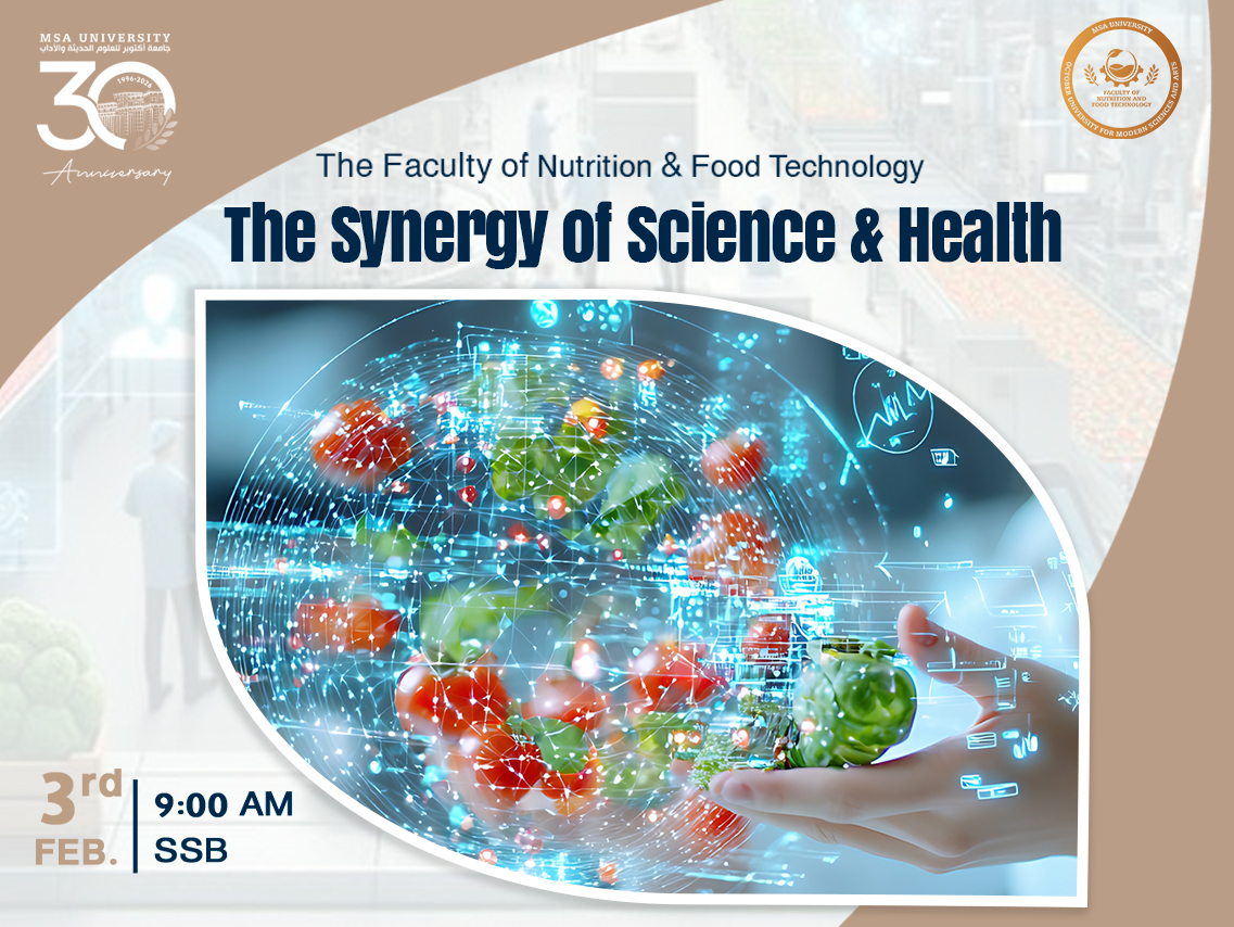 The Faculty of Nutrition and Food Technology at October University for Modern Sciences and Arts (MSA) proudly announces its inaugural conference, designed to reflect the faculty’s dual mission of advancing human health through Nutrition and driving industrial innovation through Food Technology. This landmark event aims to create a dynamic platform that bridges these two interconnected fields, fostering dialogue, collaboration, and forward-thinking solutions for the future.