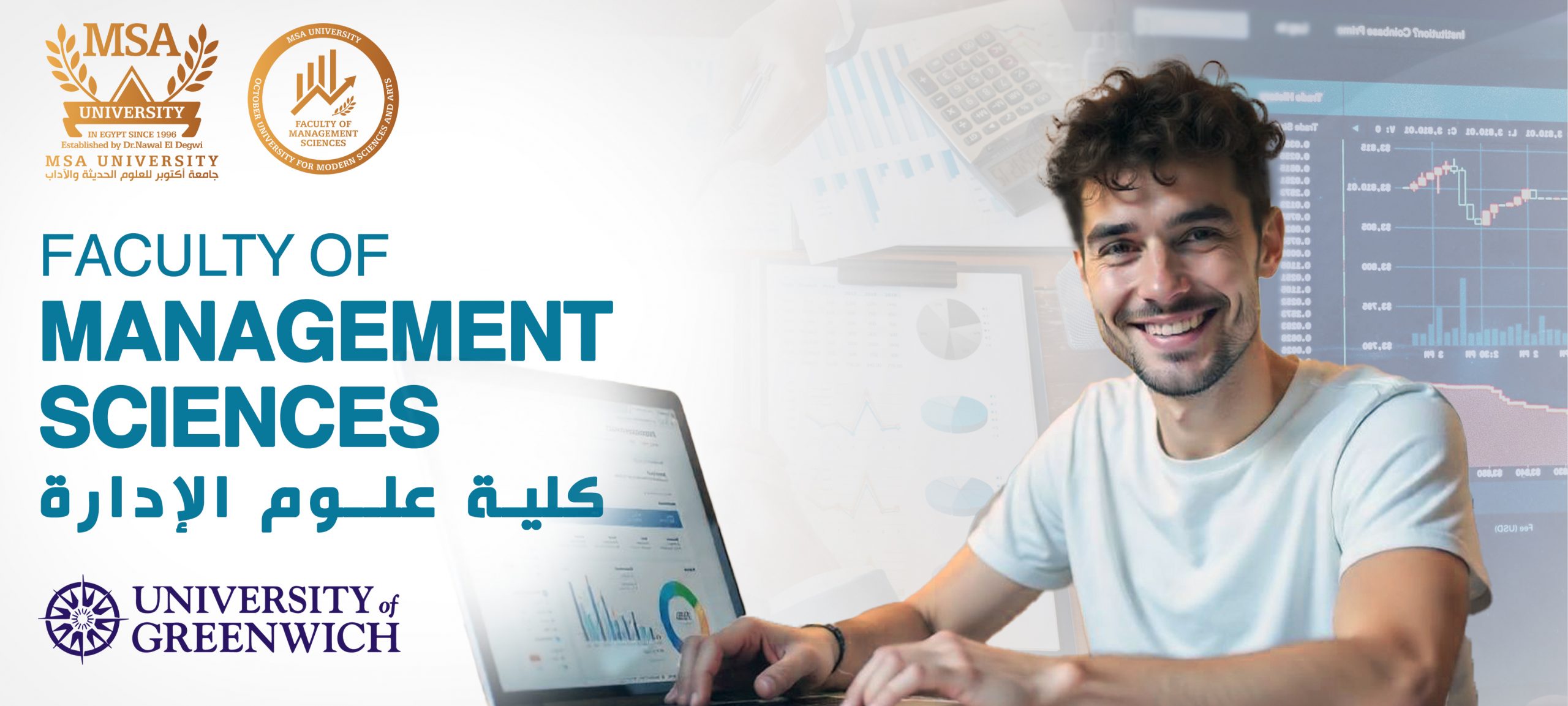 The Faculty of Management Sciences would like to welcome you to MSA University. The Faculty of Management Sciences offers six separate programmes, namely BA (Hons) Accounting, BA (Hons) Economics, BA (Hons) Management Information Systems, BA (Hons) Marketing and International Business, BA (Hons) Human Resources Management and BA (Hons) Finance & Investment Management . The degree offered by the Faculty of Management Sciences at MSA is accredited by the Supreme Council of Egyptian Universities and The Faculty is validated from University of Greenwich. Thus a graduate of MSA Faculty of Management Sciences will receive two certificates. One approved by the Supreme Council of Egyptian Universities and the other from University of Bedfordshire.