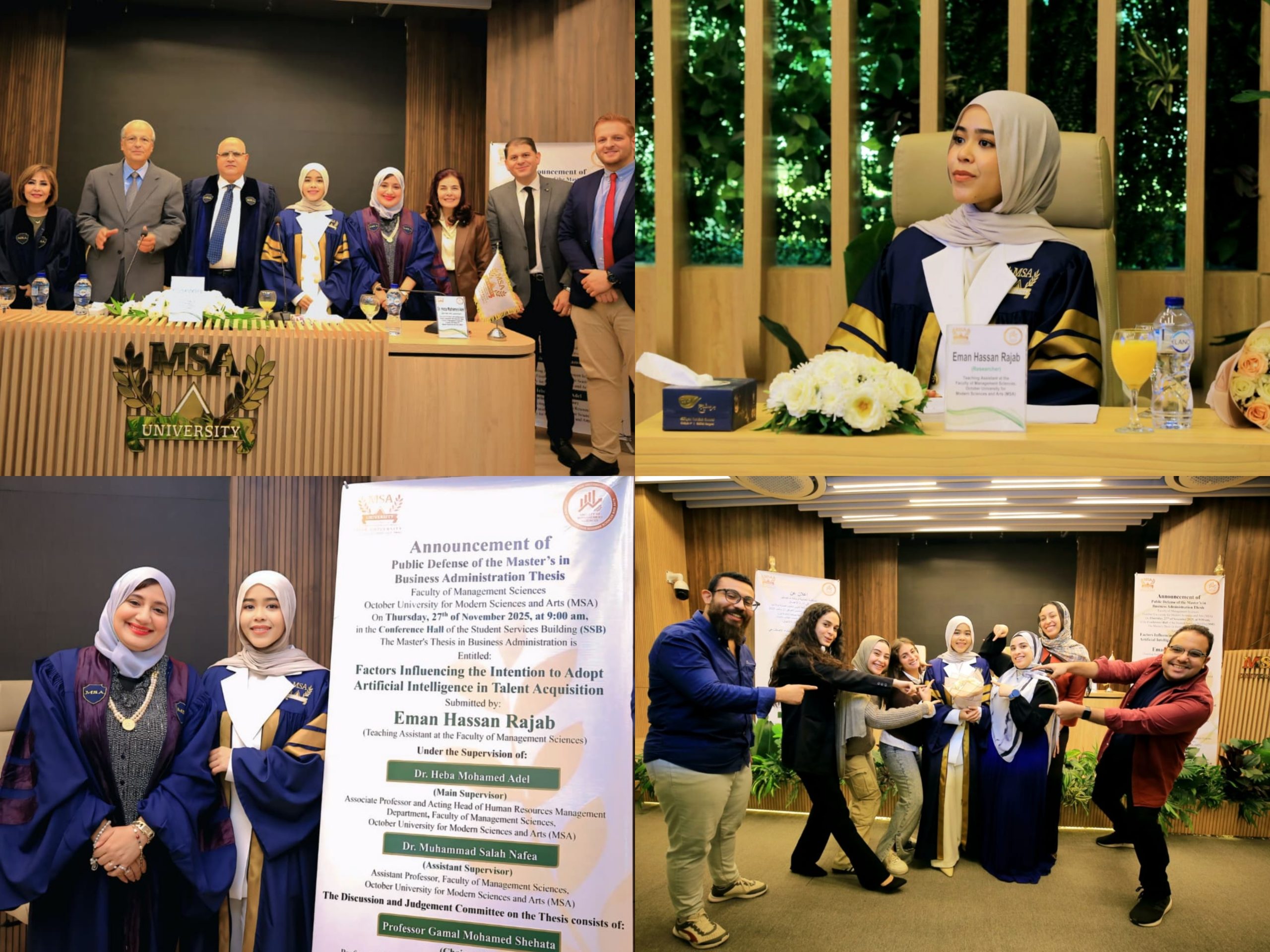 October University for Modern Sciences and Arts (MSA) and the Faculty of Management Sciences congratulate Eman Hassan Rajab on earning her MSc in Business Administration degree.
