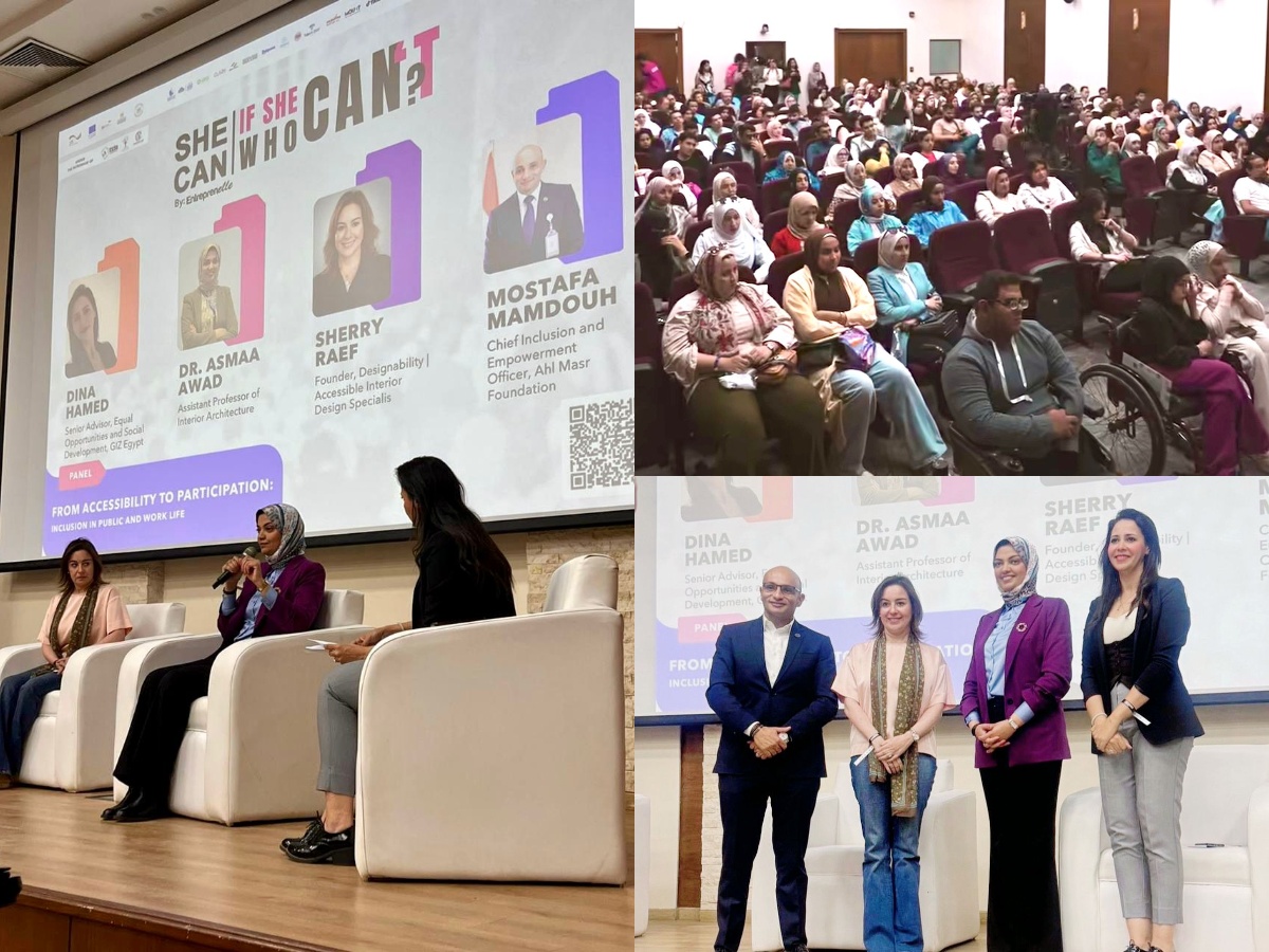 Dr. Asmaa Awad, Assistant Professor at the Interior Design Department, took part as a featured panelist in the session entitled “From Accessibility to Participation: Inclusion in Public and Work Life.” The forum was organized by Entreprenelle in partnership with GIZ Egypt and the European Union.