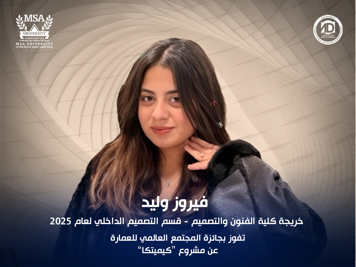 October University for Modern Sciences and Arts (MSA University) proudly congratulates Shorouk Mokhtar, an Interior Design student at the Faculty of Arts and Design, Class of 2025, for winning the Interior Design Award in the 51st Cycle of the World …