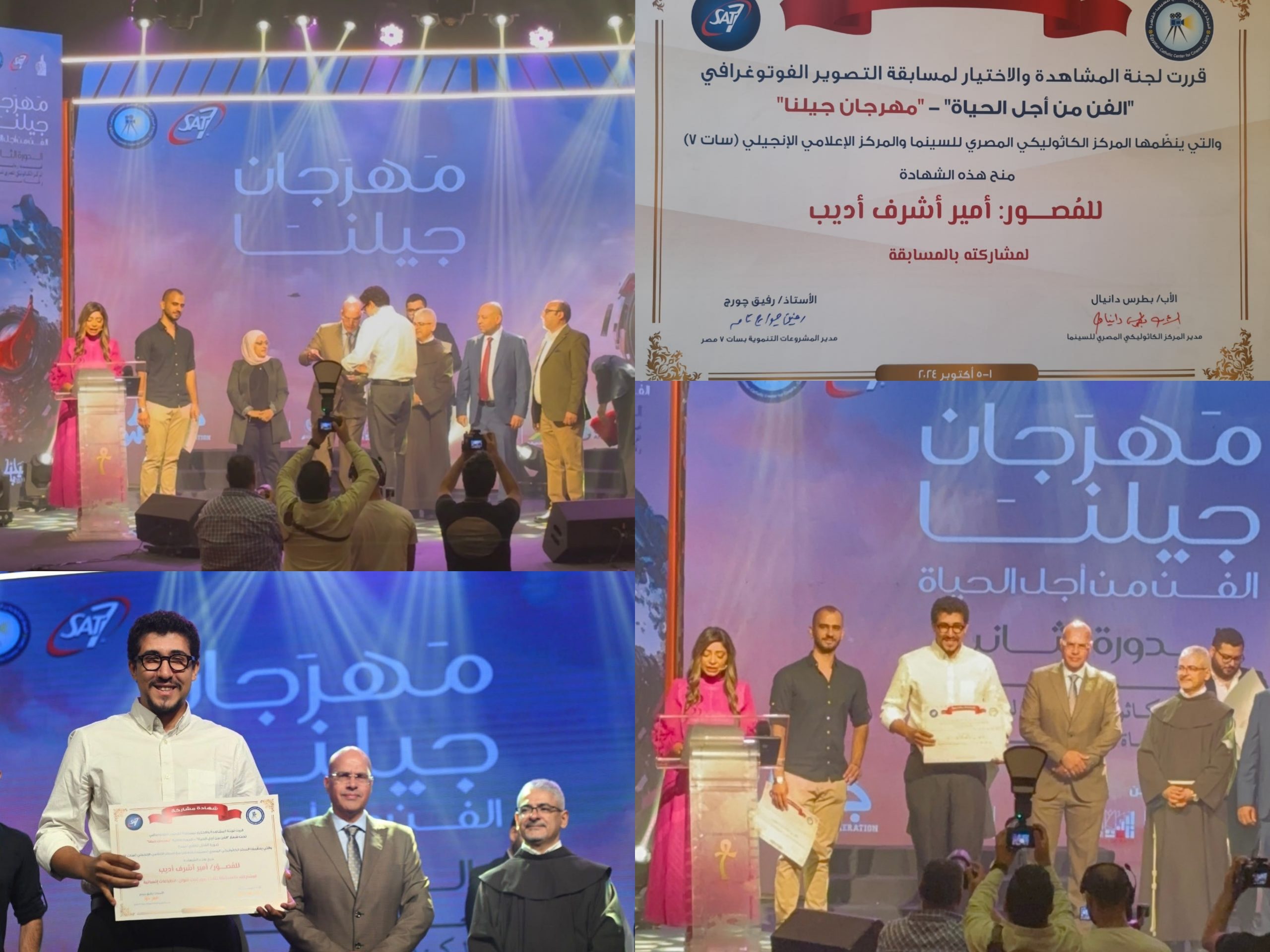 Congratulations to Amir Ashraf Adeeb Eskandar, a fourth-year student at the Department of Cinema and Theatre, Faculty of Arts and Design – October University for Modern Sciences and Arts, on his remarkable achievement at the Gilna – Art for Life Festival (Lotfy Labib Edition), held at the Egyptian Catholic Center for Cinema.