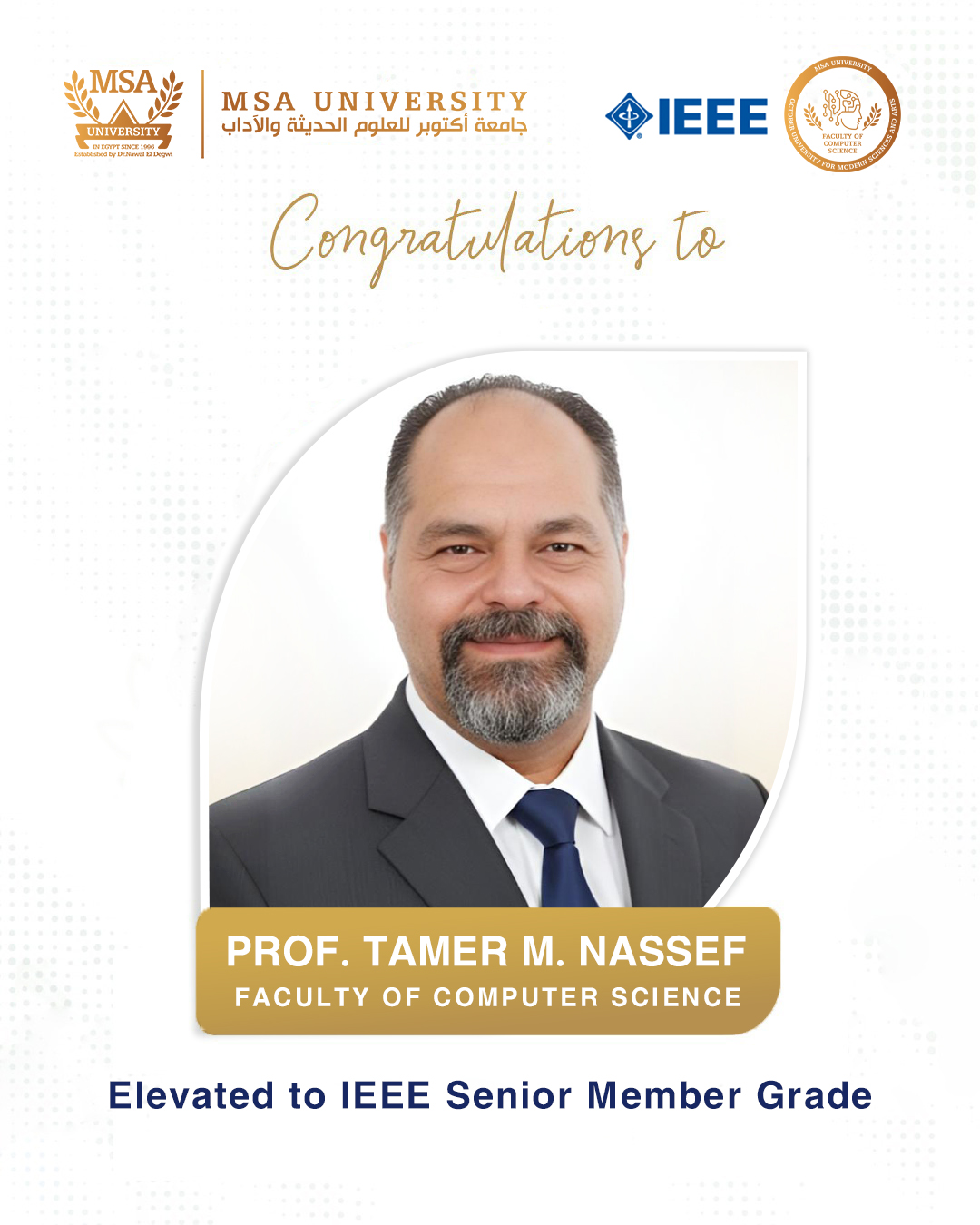 October University for Modern Sciences and Arts (MSA) and the Faculty of Computer Science are proud to announce the elevation of Prof. Tamer M. Nassef to the grade of Senior Member of the IEEE (Institute of Electrical and Electronics Engineers).