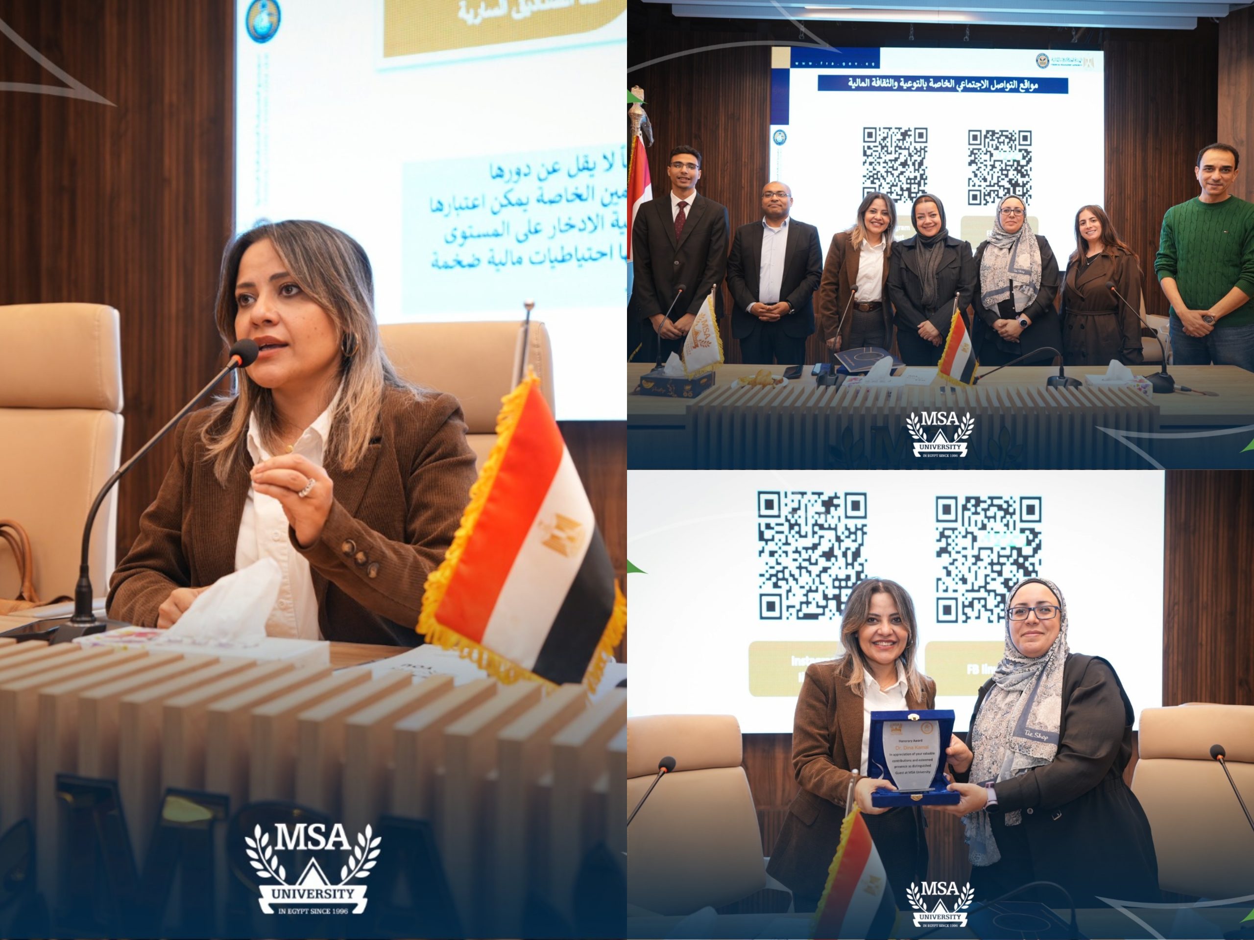 The Faculty of Management Sciences at October University for Modern Sciences and Arts (MSA) and the Finance and Investment Management Department invited Dr. Dina Kamal, Head of the Central Department for Financial Awareness and Culture at the Egyptian Financial Regulatory Authority
