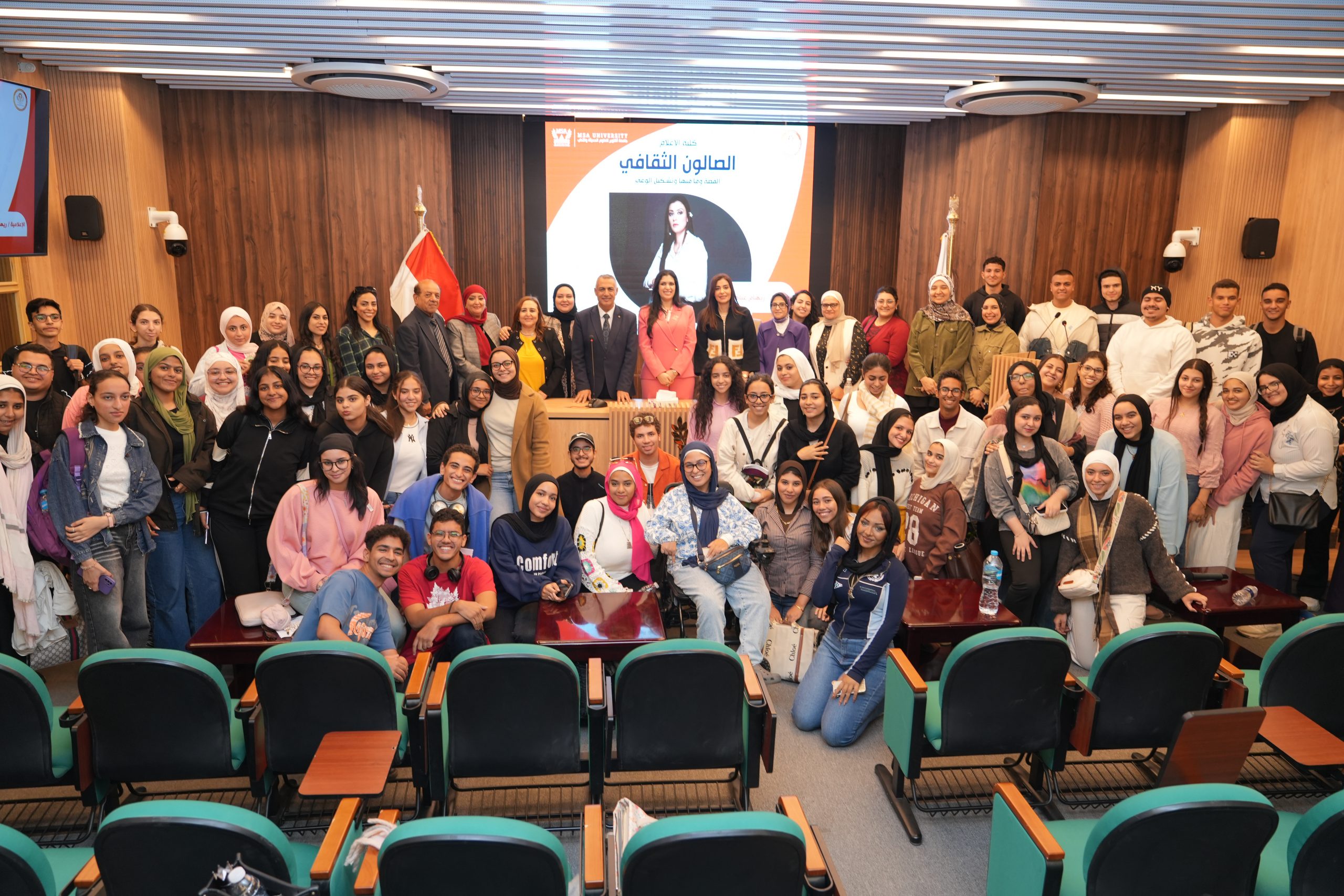 The Faculty of Mass Communication at October University for Modern Sciences and Arts (MSA) welcomed today the distinguished content creator, researcher, and media figure Riham Ayad in an engaging and fully packed interactive seminar. The event drew a large audience of students from various faculties, filling the hall with enthusiasm, curiosity, and a strong passion for knowledge.