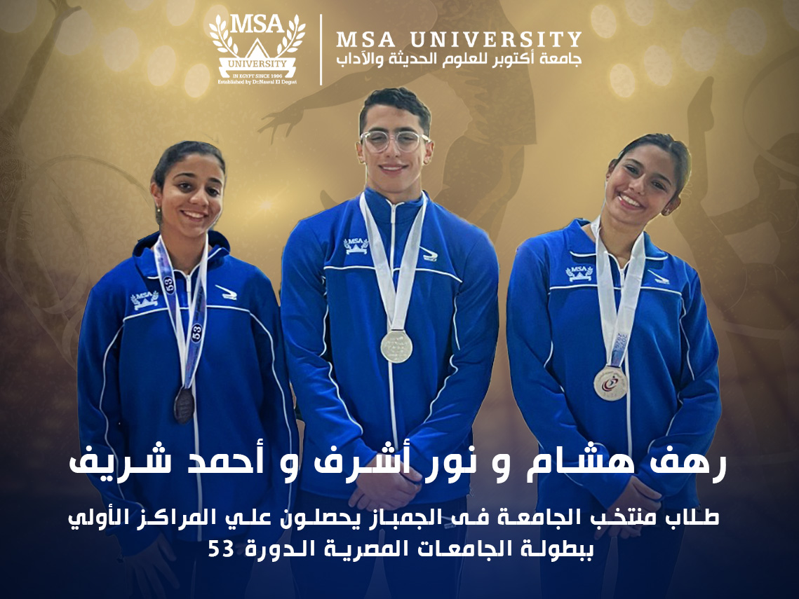 October University for Modern Sciences and Arts (MSA) proudly celebrates the remarkable achievements of its students in the 53rd Egyptian Universities Gymnastics Championship, a highly competitive event that brought together participants from universities across the country under the supervision of MSA’s Youth Welfare Department.