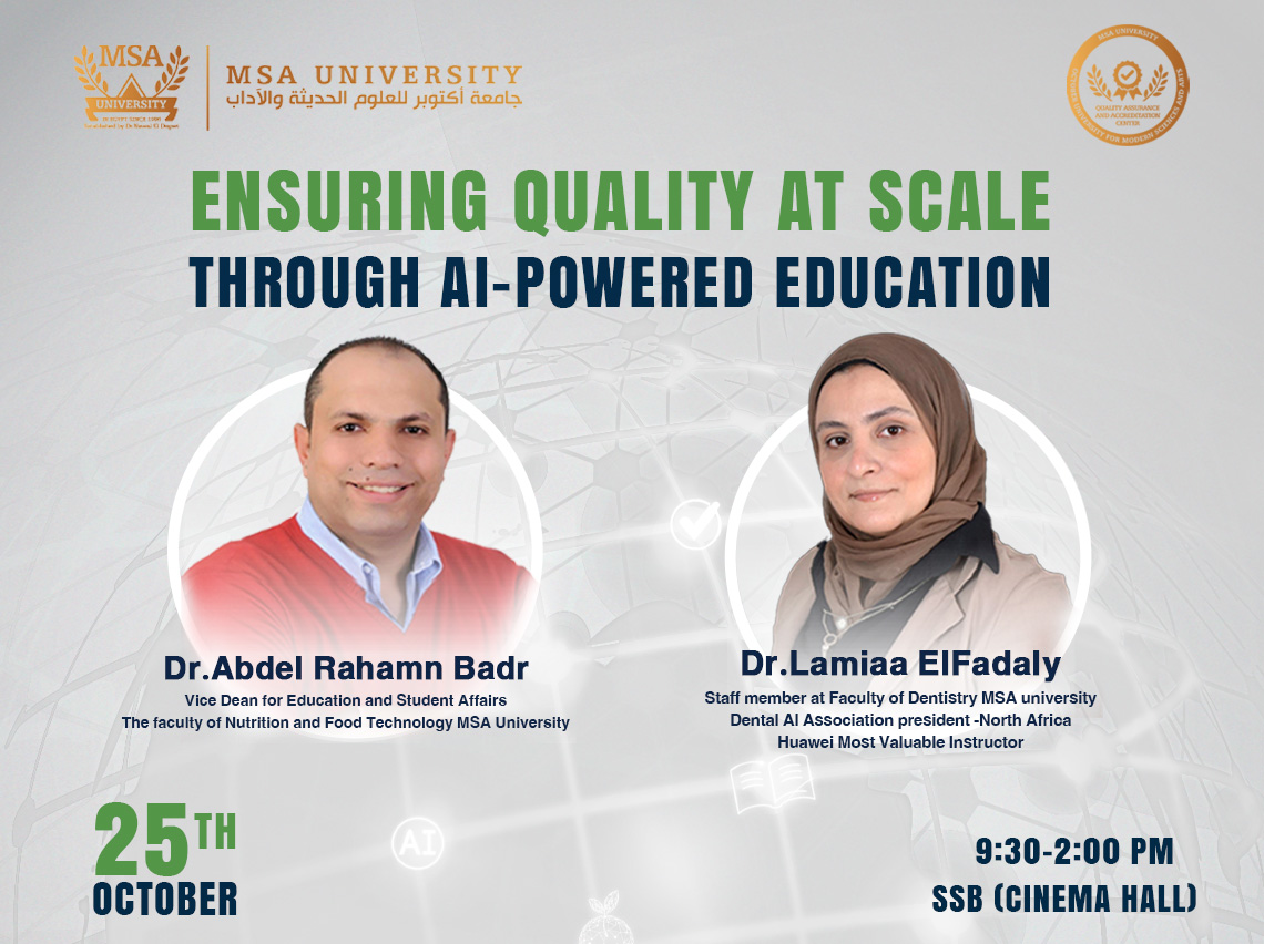 The Quality Assurance and Accreditation Center, October University for Modern Sciences and Arts (MSA), is pleased to announce an upcoming session entitled “Ensuring Quality at Scale through AI-Powered Education.” This event is dedicated to exploring the strategic integration of Artificial …