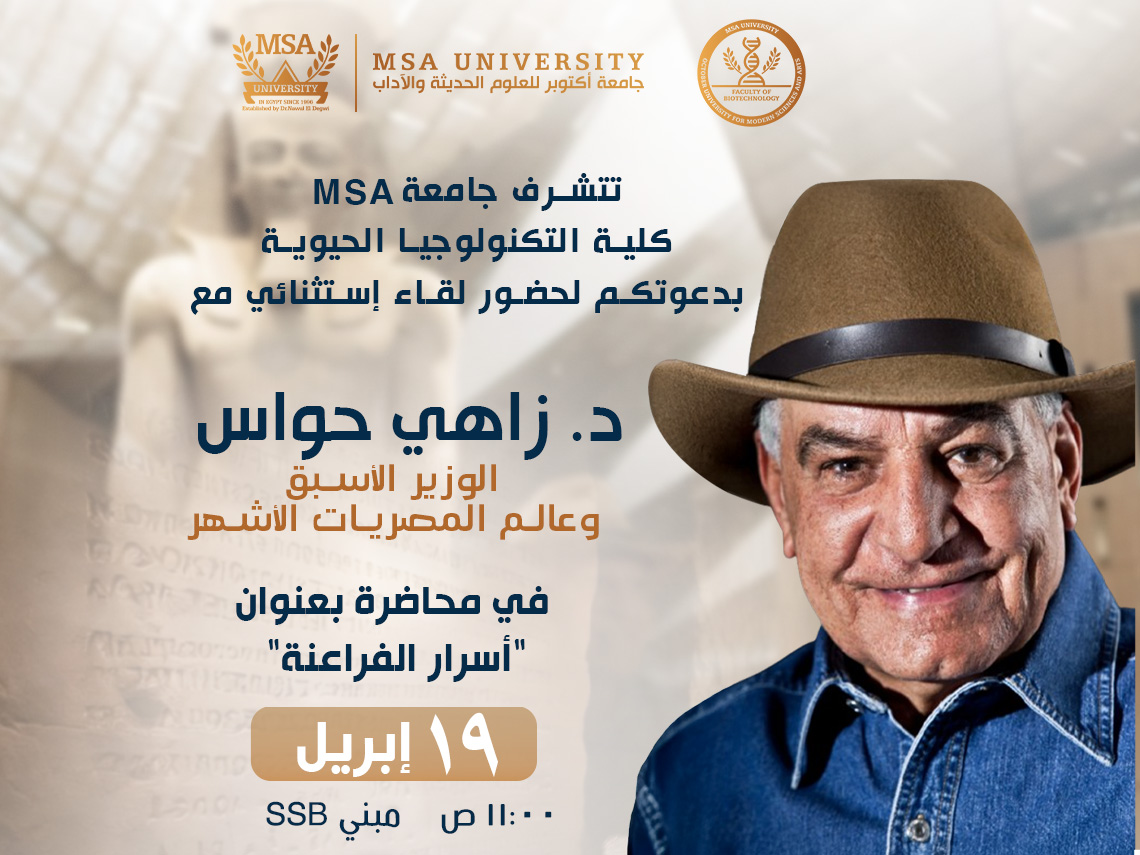 The Faculty of Biotechnology at October University for Modern Sciences and Arts is honored to invite students, faculty members, and the wider community to attend a distinguished lecture by Dr. Zahi Hawass, internationally renowned Egyptologist and former Minister of Antiquities …
